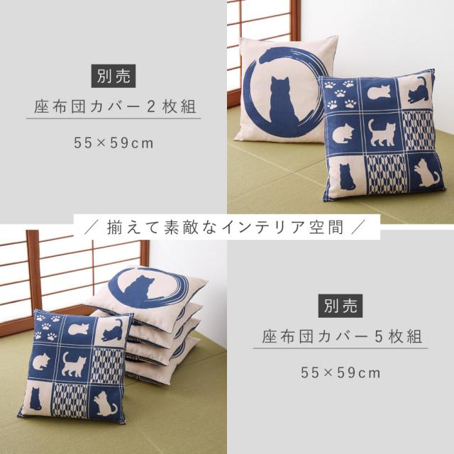 仕草が愛らしいにゃんこの影と足跡にほっこり。紺色のカラーと矢絣柄が和室にもよく合う、落ち着いたデザインです。