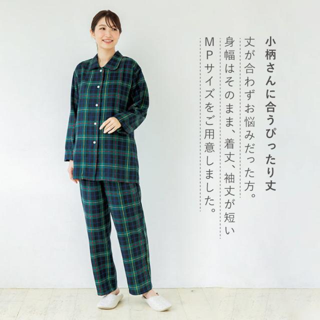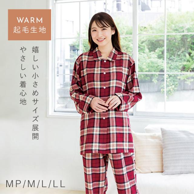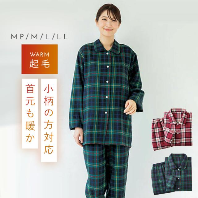 パジャマ レディース 冬用 暖かい 前開き 長袖 小さいサイズ 小柄 身長が低い 低身長 秋冬 チェック あったか 綿混起毛パジャマ 女性用