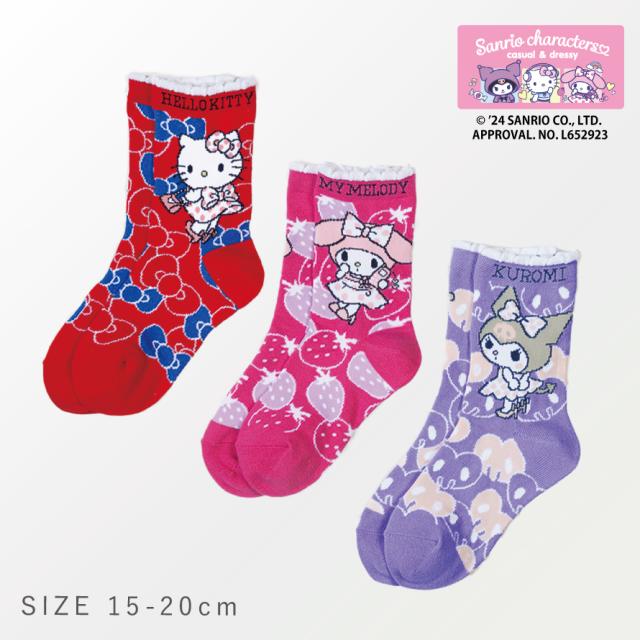キティちゃん 靴下 子ども キッズ 女の子 15cm 3柄組 15-20cm サンリオ キティ マイメロディー クロミ 可愛い 名前が書ける サンリオキャラクターズドレッシーソックス