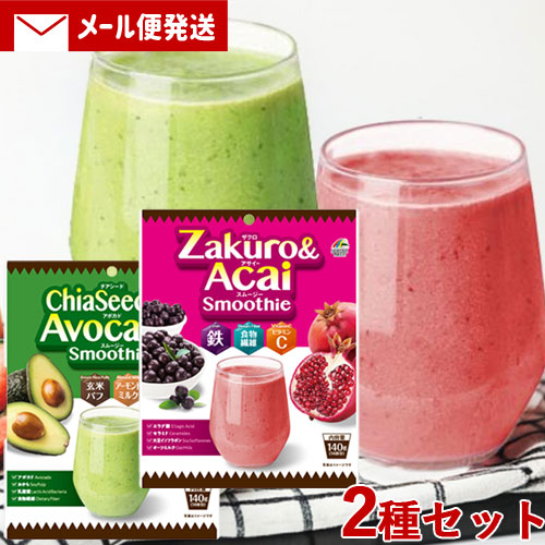 スムージーお試し2種セット ザクロ&アサイー×チアシード&アボカド 各140g×2個 栄養補助食品 ユニマットリケン(UNIMAT RIKEN)【メール便送料込】