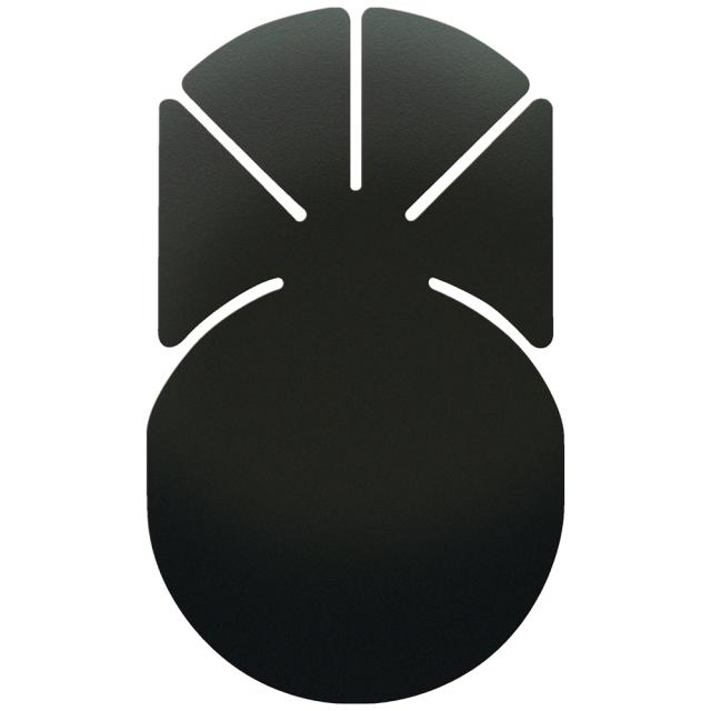 ●吸盤基台の安定した取り付けを可能にする、扇型貼付ベース。