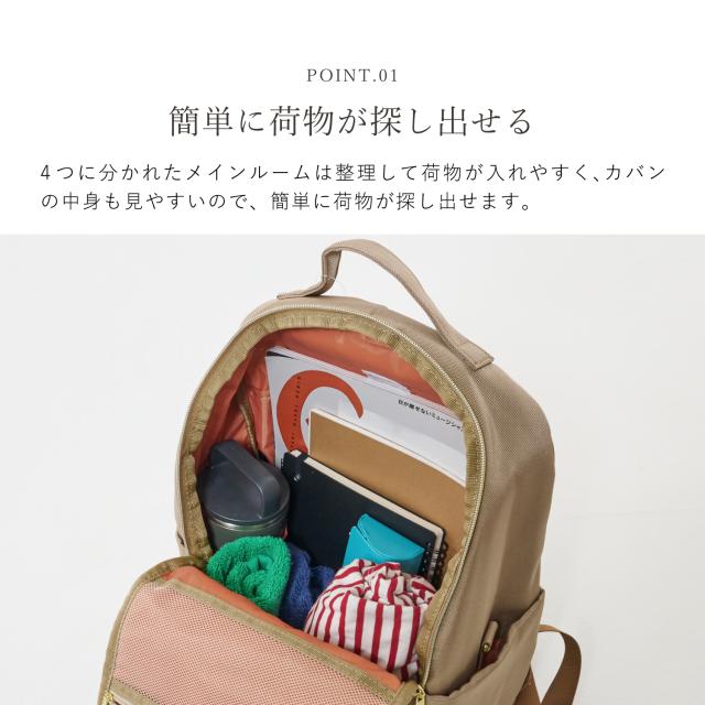 簡探バッグシリーズに新たなシリーズが登場!より内側が見やすく、探しやすくなりました。生地は絶妙な光沢感と質感の撥水ポリエステル生地でタフにお使いいただけます。ガバッと開く開口部の仕様で内側も一目で探しやすいです。メッシュポケットや、キーフック、自立感も嬉しいポイントです。背面とショルダー裏にはメッシュをしているので通気性も抜群です。ショルダーにはクッション性と、体にフィットするカーブデザインを。