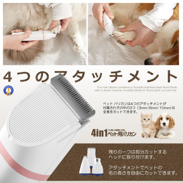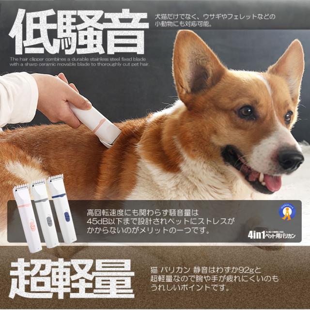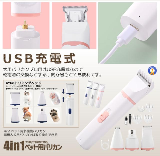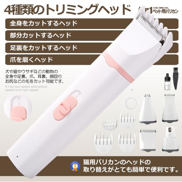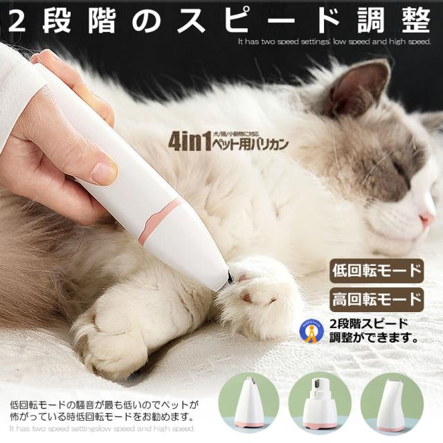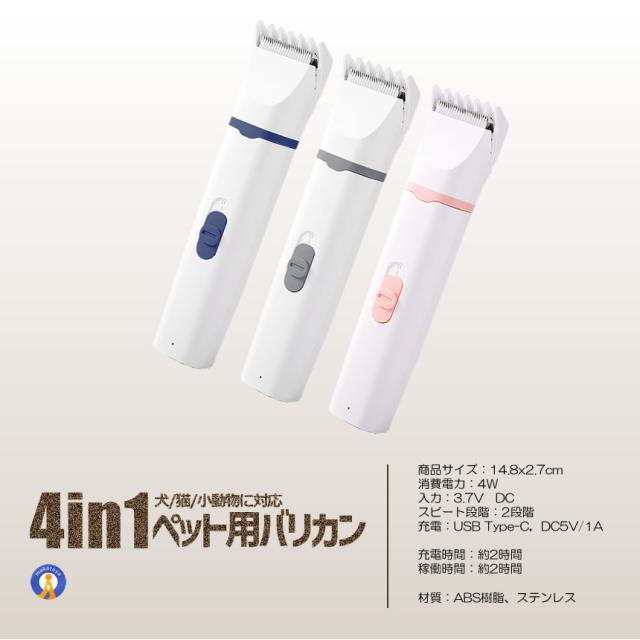 猫 犬用バリカン 多機能 4in1 ペット用 バリカン 2段階スピード調整 猫 バリカン 低騒音 足裏 爪 耳裏 顔回り お尻 全身カット可能 USB充電式 ペット用グルーミングセット 初心者 PETKEKE