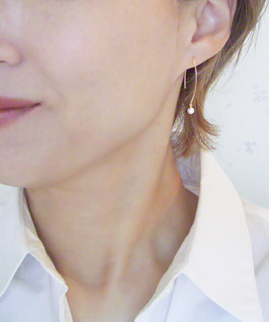 大きすぎず、小さすぎず、上質で洗練された18金の質感が大人の女性に似合います。動くたびに揺れるデザインでお顔まわりがパッと華やかに♪