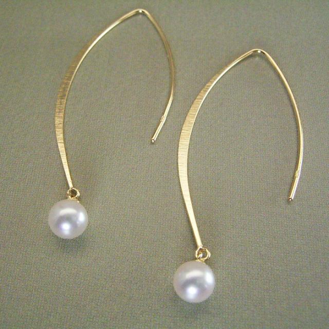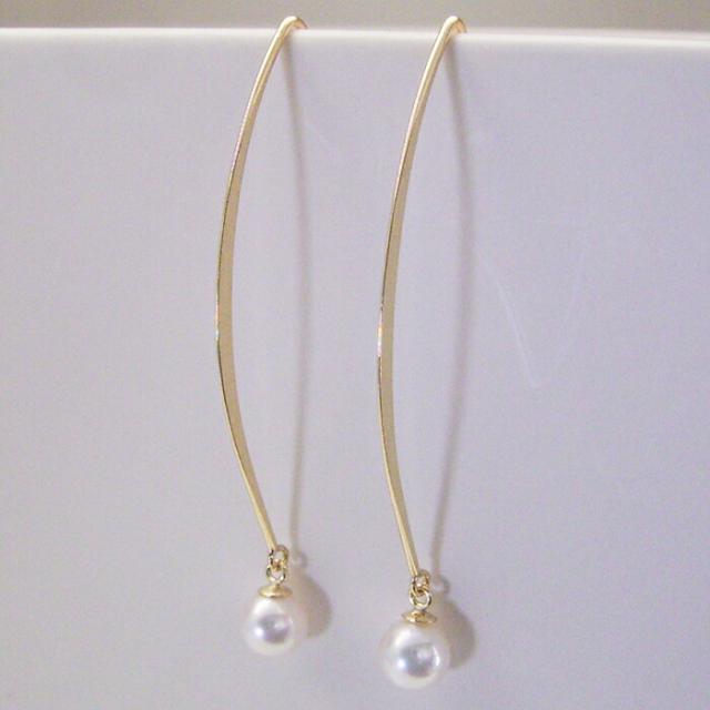 上質18金ゴールドでお作りした揺れる本真珠ピアスをお届け致します。本真珠は約4mmから約4.5mmのベビーパールをセット。素材は上質18金ゴールド。