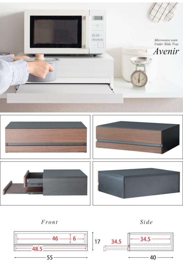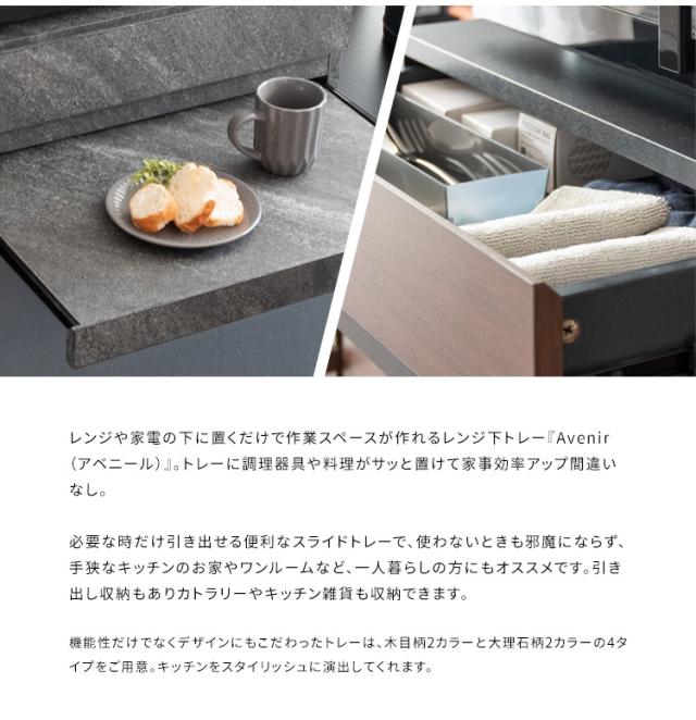 レンジ台 完成品 レンジ下トレー Avenir(アベニール) TY-004 4色対応 レンジラック スライドテーブル キッチン収納 レンジ下収納 引き出し スライドラック キッチンラック レンジ下ラック 木製 北欧 おしゃれ シンプル