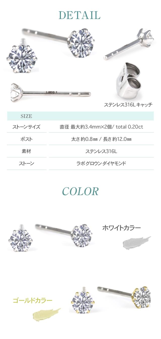 ダイヤモンド ピアス 一粒 0.2カラット ダイヤピアス ラボグロウン ダイヤモンドピアス ステンレス 一粒ダイヤ 0.2ct 金属アレルギー サージカルステンレス 医療用 ダイヤ ラボ ゴールド レディース ジュエリー アクセサリー シンプル 誕生日 クリスマス プレゼント 女性
