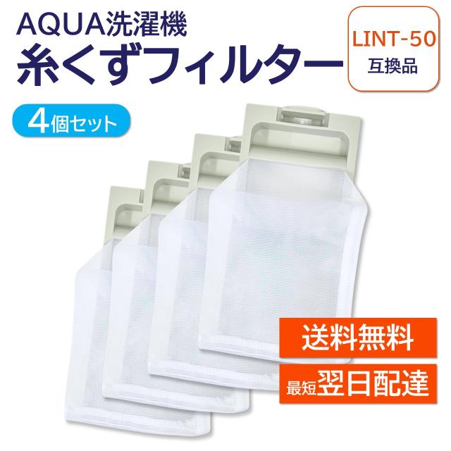 アクア ハイアール LINT-50 JW-RFG51ADH 4個セット 洗濯機 糸くずフィルター 互換品 対応 AQUA 洗濯槽 衣類 交換品 部品 パーツ 洗濯槽 新しい フィルター ごみとりネット 糸くずネット