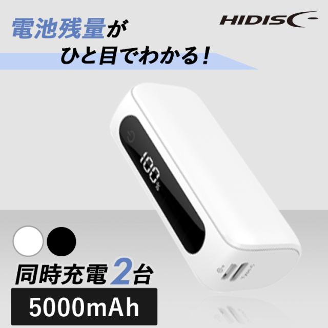 (検索用:モバイルバッテリー 軽量 小型 iPhone 見える電池残量 タイプC 5000mAh HIDISC ハイディスク 正規品 2台同時給電 USB-A type-C スマホ PSE対応 4984279862117 4984279862100)