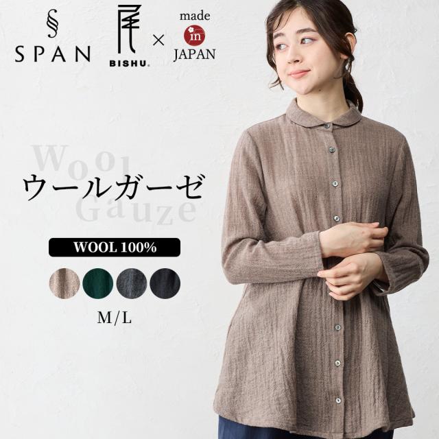 シャツブラウス マルエリ レギュラーカラー 襟付き ブラウス シャツ 羽織 2way 重ね着 レイヤード 毛 メリノウール 尾州 毛100% ウールガーゼ シンプル きれいめ フェミニン 春 夏 秋 冬 婦人服 女性 服 ミセス ミセスファッション 40代 50代 レディースファッション ファッション 日本製 SPAN スパン