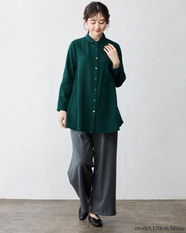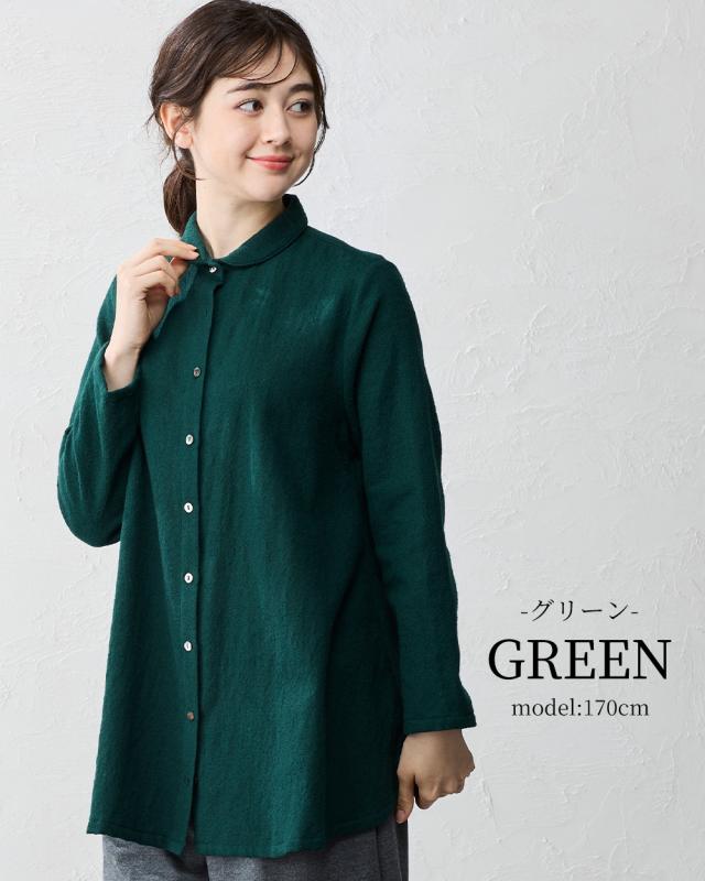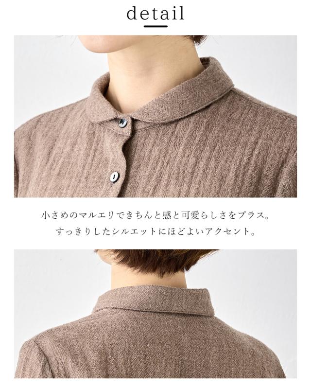 メリノウール シャツ ブラウス 日本製 ウール100% ウールガーゼ 春 夏 秋 冬 シャツ衿 ショール衿 レギュラーカラー マルエリ 羽織 重ね着 長袖 ファッション レディース おしゃれ フェミニン 襟付き 30代 40代 50代 60代
