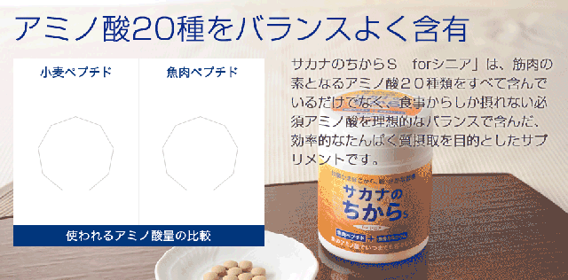 「鈴廣かまぼこ サカナのちからS 分包 12粒×30包」は、筋肉の素となるアミノ酸20種類をすべて含んでいるのに加え、食事からしか摂れない必須アミノ酸を理想的なバランスで含んだ栄養補助食品です。アミノ酸の分子がいくつかまとまった状態の魚肉ペプチドであるため、効率よくたんぱく質を体に取り込むことができます。天然の魚の身だけを使い、酵素で分解をしているため化学物質が含まれておらず、アレルギーや副作用の心配もありません。飲みやすい小粒タイプでアクティブシニアの若々しく活力ある毎日をしっかりサポートします。持ち運びしやすい分包タイプ。
