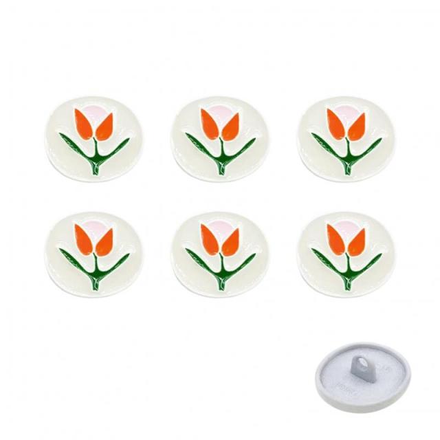 WIICOYK レディース かわいい チューリップ柄 黒 白 または ゴールド縁 ボタン シャツ カフス ドレス用 飾り 洋服 交換 修理 DIY 手作り アクセサリーパーツ 工芸品 チャーム 18mm 6個セット (白縁)