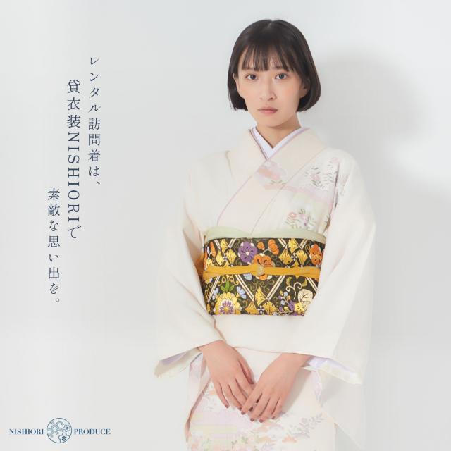 訪問着 レンタル 着物レンタル 貸衣装 フルセット 七五三 クリーム ベージュ オフホワイト 薄色 上品 和モダン No.0335