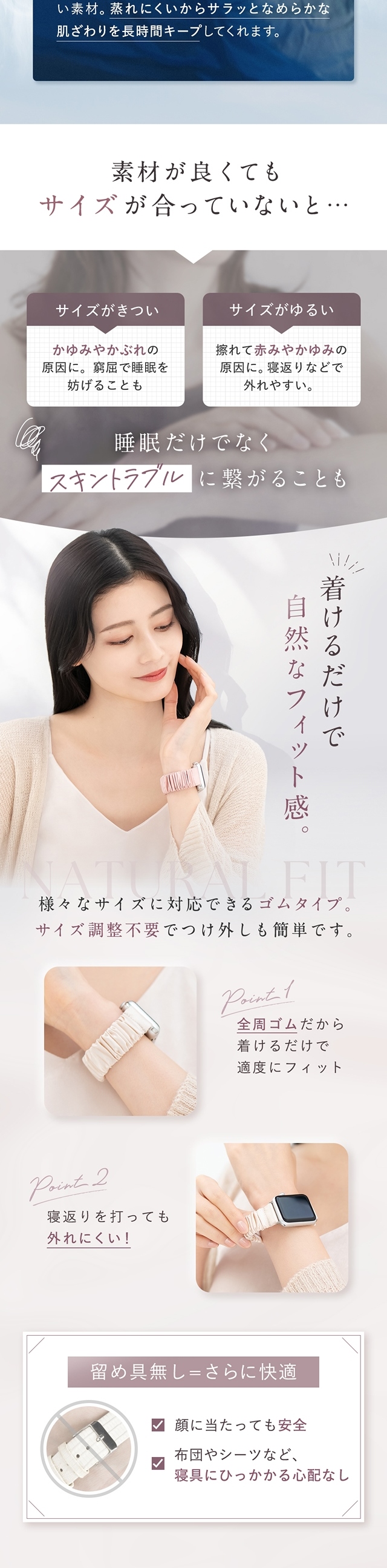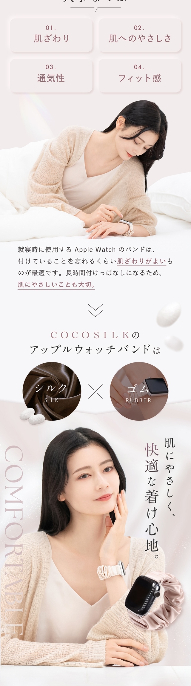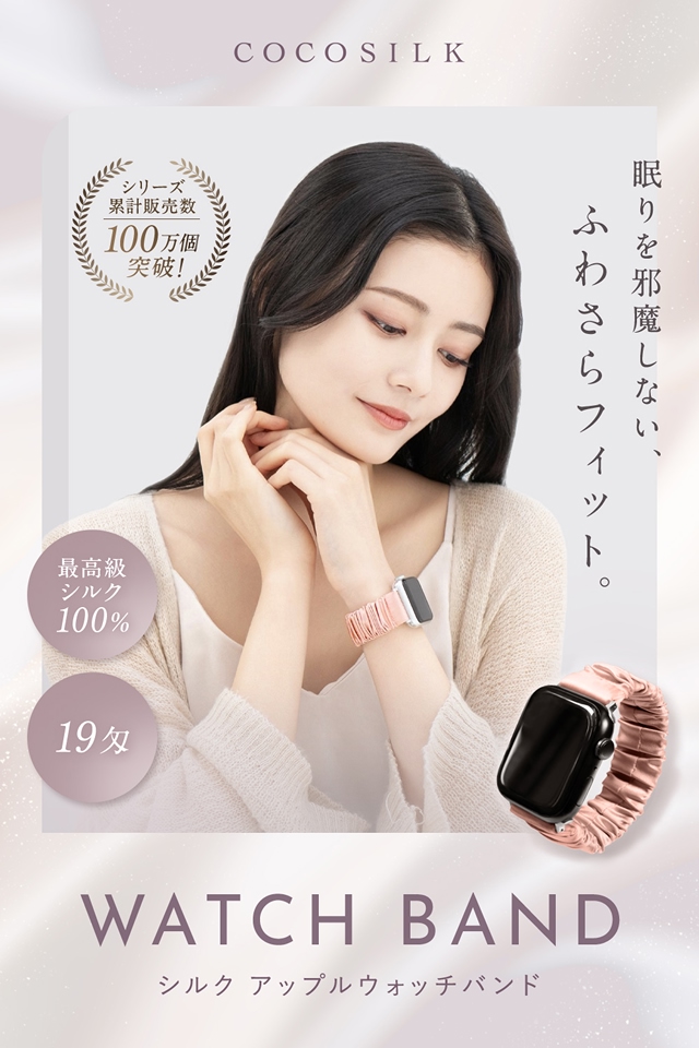 アップルウォッチ 交換バンド 伸縮 スマートウォッチ 睡眠 シルク100% COCOSILK ゴムバンド apple watch バンド ゴム 女性 伸縮ベルト se 45mm 44mm 40mm 対応 ココシルク