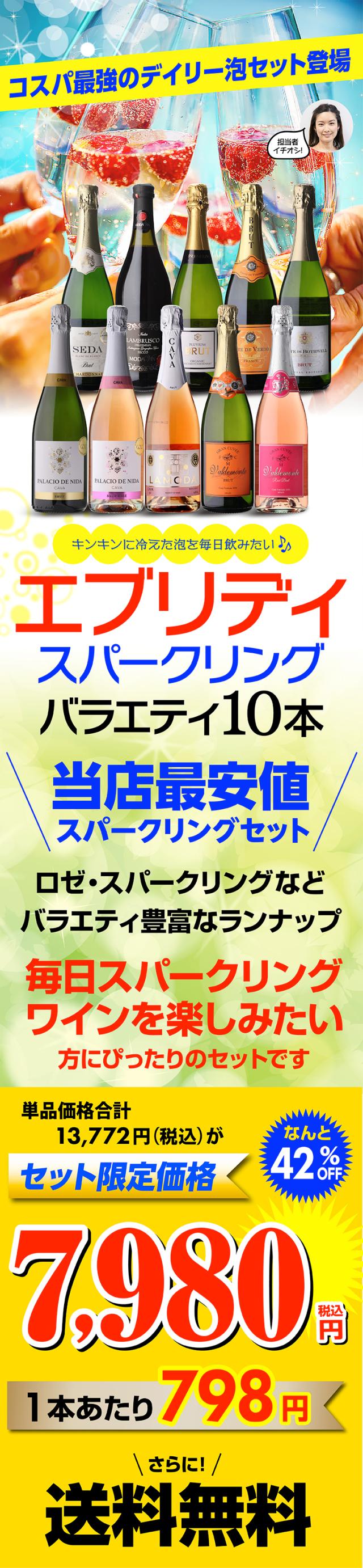 スパークリングワインセット 辛口 白 ロゼ 赤 10本セット 泡だけ エブリデー泡10本セット 53弾 浜運