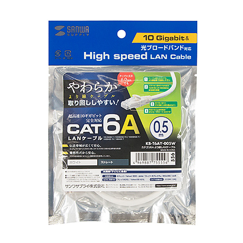 サンワサプライ KB-T6AY-005W カテゴリ6Aより線LANケーブル 取り寄せ商品