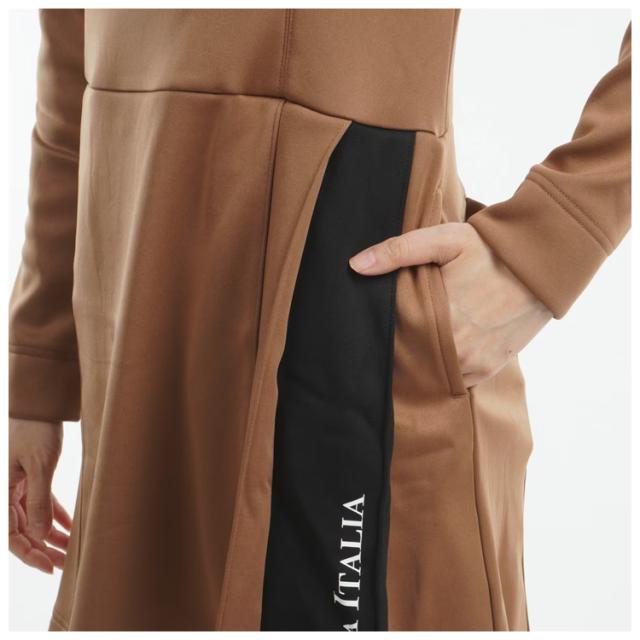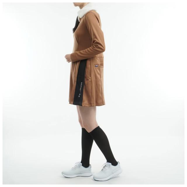| プロフィール | 裏ベロア取外し衿ファー長袖モックネックワンピース。 ストレッチ性と保温性に優れた裏ベロアの柔らかな肌心地が魅力。 衿のファーはボタンで簡単に取り外し可能なので2WAYでコーディネートを楽しめます。 スカートのプリーツを寄せたバイカラーラインには、ロゴプリントをのせてアクセントを持たせたデザインです。 4ポケット、Dカン付きです |