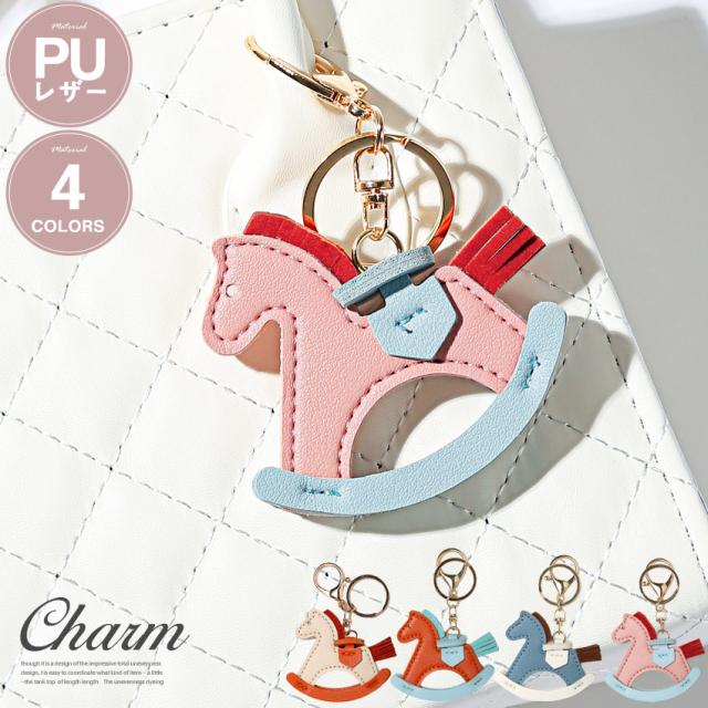 チャーム バッグチャーム バックチャーム キーホルダー アクセサリー レディース PUレザー 革【PUレザーチャーム木馬モチーフ】 aa-3317