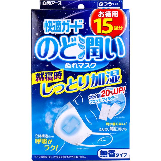 快適ガード のど潤いぬれマスク 無香タイプ ふつうサイズ 15セット入