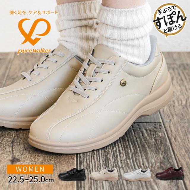 スニーカー レディース 黒 ローカット 手を使わず履ける ハンズフリー 履きやすい 通勤 通学 看護師 介護士 ウォーキングシューズ レディース 疲れにくい 疲労軽減 姿勢サポート 立ち仕事 靴 ピュアウォーカー pure walker シルバー ワイン レッド ベージュ 白 ホワイト 1800