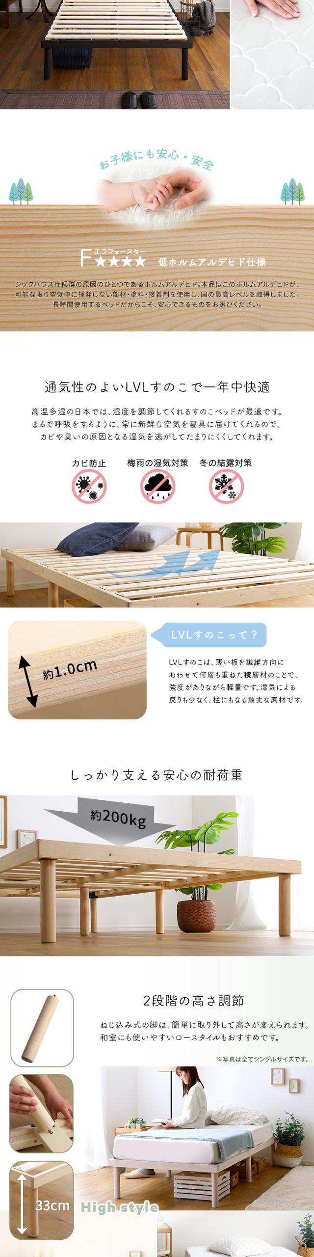 すのこベッドは北欧産パインフレームを使用し、通気性と耐久性にも優れた頑丈設計を採用!