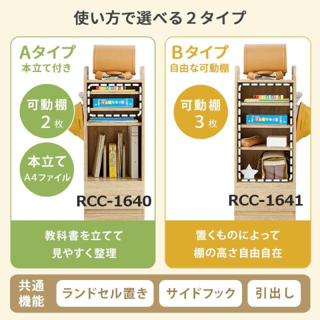 ランドセルラック Bタイプ スリムタイプ 幅35cm キッズファニチャー 子供部屋 キャスター付 連結可能 サイドフック 教科書 収納棚 引出し かばん 掛け 入園 入学 祝い 家具 引越し 新生活 RCC-1641