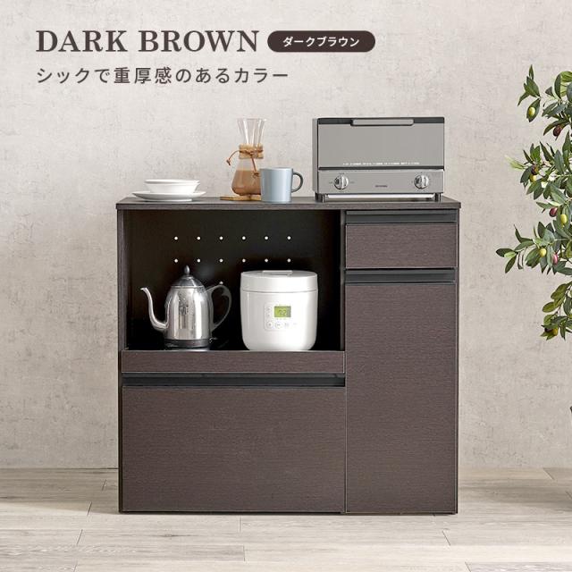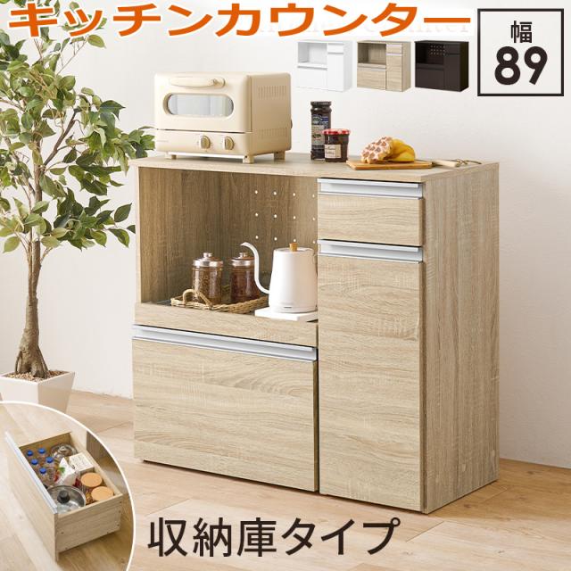立てって作業がしやすい天板高さのカウンターキャビネット。食器や調理器具、キッチン家電がスッキリ片付く大容量収納です。ワゴン収納庫タイプ