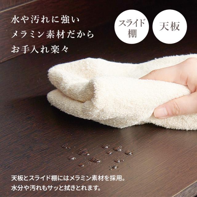 ■主材:プリント紙化粧パーティクルボード、天板・スライド棚:合成樹脂化粧パーティクルボード(メラミン樹脂)、取手:スチール