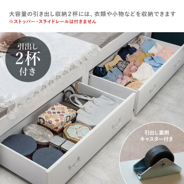引出し収納付 エレガント シングルベッド 2口コンセント付 フレームのみ すのこ 通気性 湿気対策 ベッド下収納 一人暮らし 家具 引越し 新生活 MB-5034S-R