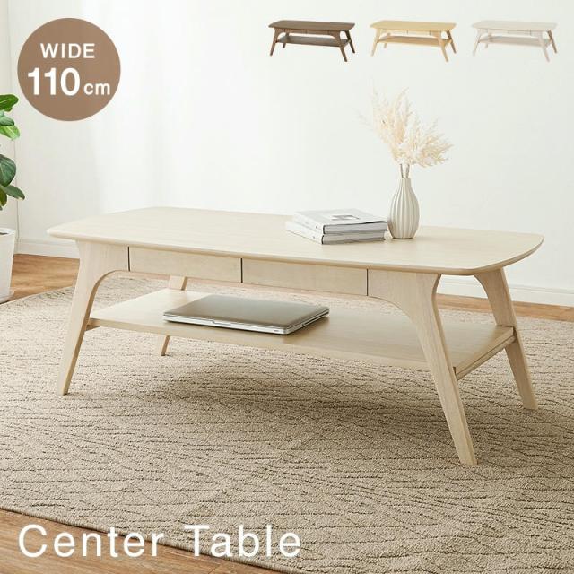 テーブル 引出2杯付 中棚付 ローテーブル センターテーブル 幅110×奥行50×高さ40cm 北欧 モダン ソファーテーブル リビング ナチュラル テイスト 家具 引越し 新生活 VT-7941