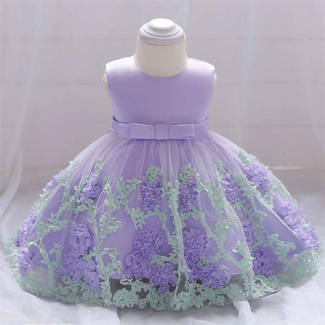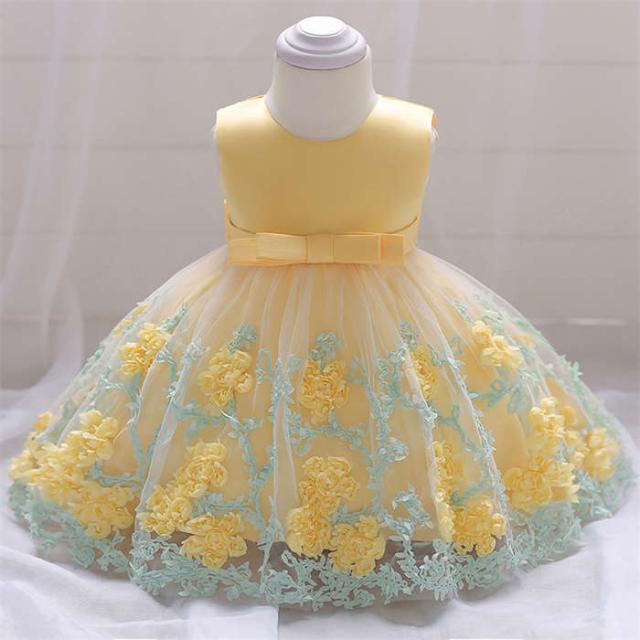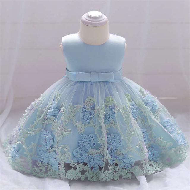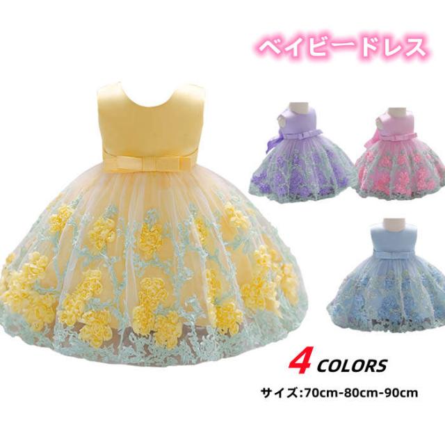 ベビードレス 女の子 子供ドレス フォーマルドレス 花柄 丸首 プリンセス 子供チュールワンピース キッズワンピース かわいい 演奏会