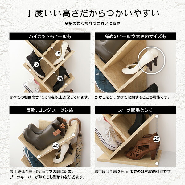 シンプルモダン シューズラック/下駄箱 【ナチュラル】 幅48cm 6足収納可 長靴・ロングブーツ対応 メラミン樹脂加工板使用 木目調 スリム 省スペース 傘立て付き