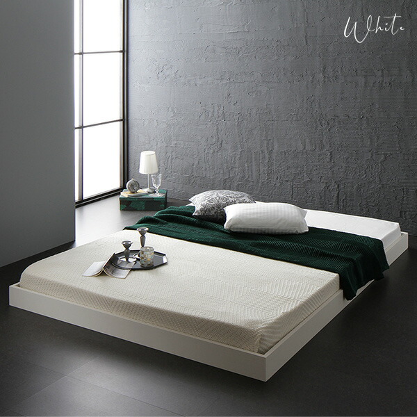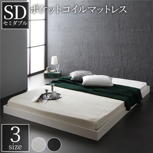ヘッドボード無し ローベッド フロアベッド セミダブルサイズ (ポケットコイルマットレス付き) スノコ構造 頑丈 木目調 スタイリッシュ ホワイト