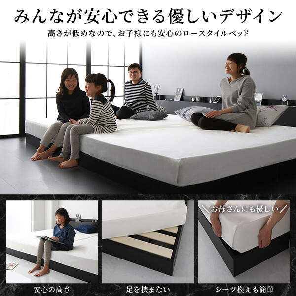 家族のスタイルや成長にあわせて組み合わせ!カビにくい簀子仕様の通気性の良い収納棚付き 連結式スノコベッド フロアベッド 低床ベッド 寝室家具 ワイドキングベッド