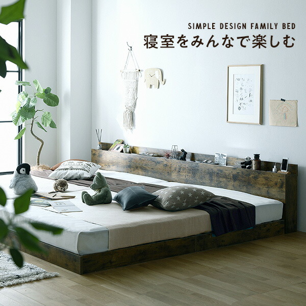 連結・分割が自由!家族の成長に合わせて長く使える ヴィンテージ調 スノコベッド ロータイプベッド WKベッド ワイドキングベット
