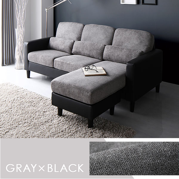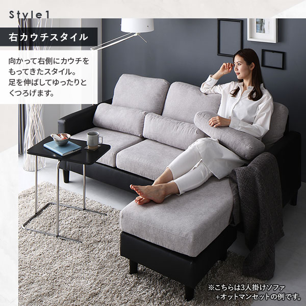 ファブリック×合皮のモダンで洗練されたデザイン。レイアウトにあわせて自由に変化可能な おしゃれ カウチソファーセット ロータイプソファー