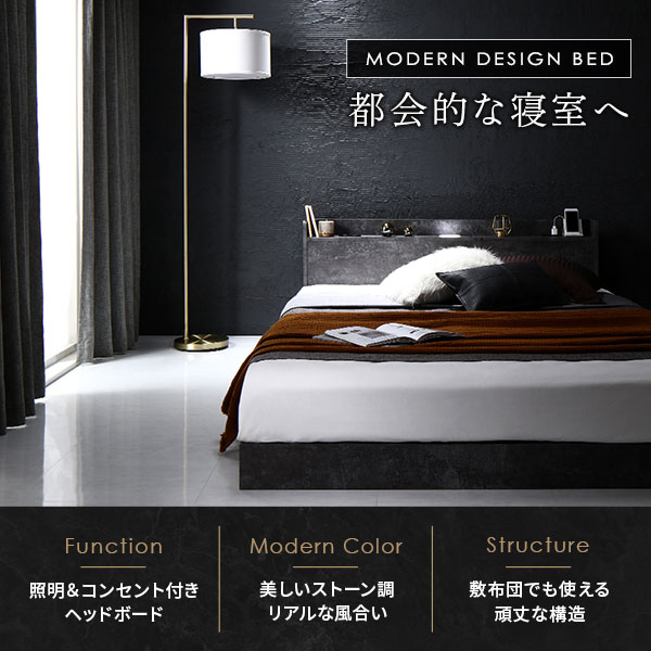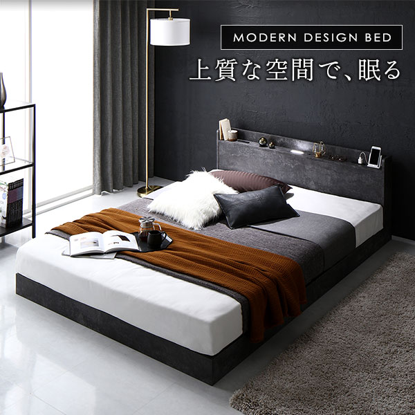 低床ベッド ロータイプベッド 宮棚付き LED照明 店 店舗 施設 民泊 引っ越し ひっこし 1人暮らし ひとり暮らし