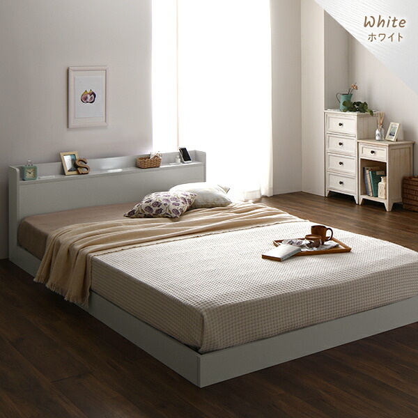ベッド シングル 2層ポケットコイルマットレス付き ホワイト 低床 すのこ LED 照明付き 宮付き 棚付き 宮棚付き 2口 コンセント付き ローベッド フロアベッド 低床ベッド すのこベッド すのこベット シングルベッド シングルベット