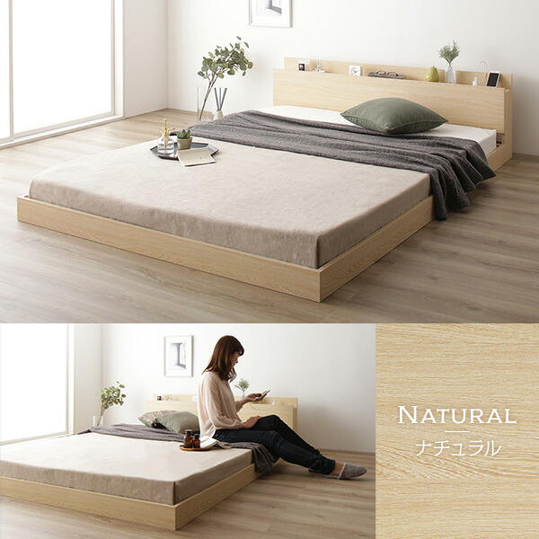 ベッド セミダブル 国産ポケットコイルマットレス付き ナチュラル 低床 すのこ 棚付き 宮付き 宮棚付き 2口 コンセント付き ローベッド フロアベッド 低床ベッド すのこベッド すのこベット ローベット フロア ベット セミダブルベッド セミダブルベット