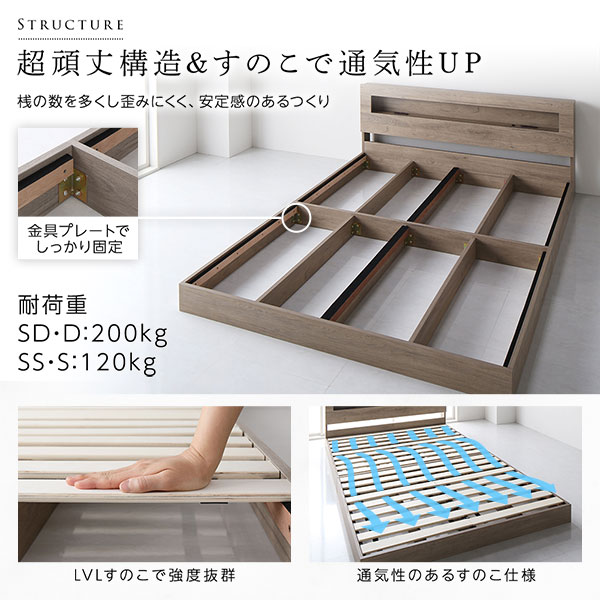 眠りに誘うやわらかなLED照明付き。モダン スノコベッド ロータイプベッド ローベット フロアベット Dベッド