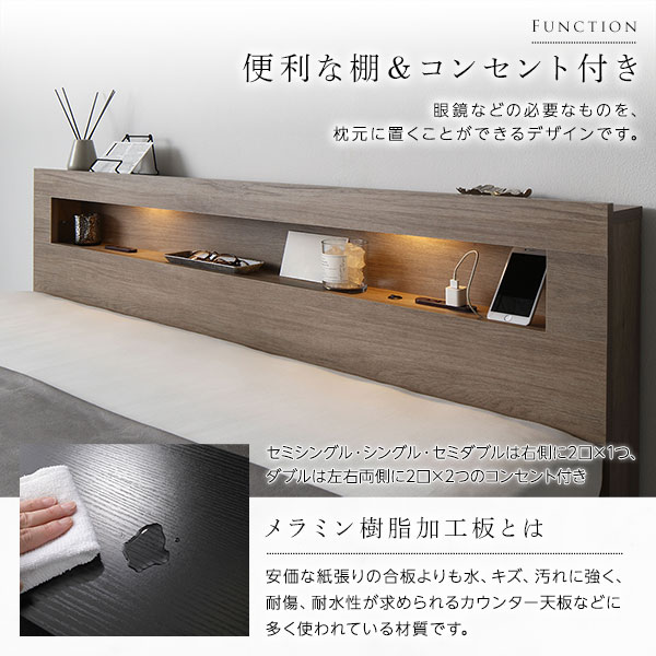 低床ベッド ローベット フロアベット 宮棚付き LED照明 施設 民泊