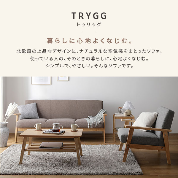 ソファ 1人掛け アーバングレー 天然木 木肘 肘付き TRYGG トゥリッグ 1人掛けソファー ダイニングソファー リビングソファー インテリア家具 リビング家具