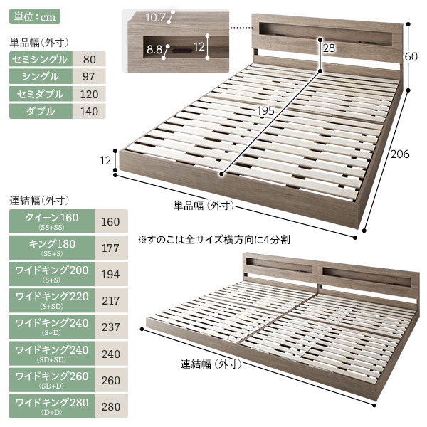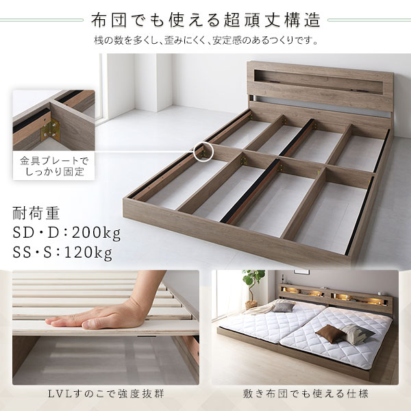 眠りに誘うやわらかなLED照明付き。モダン スノコベッド ロータイプベッド ローベット フロアベット SDベッド