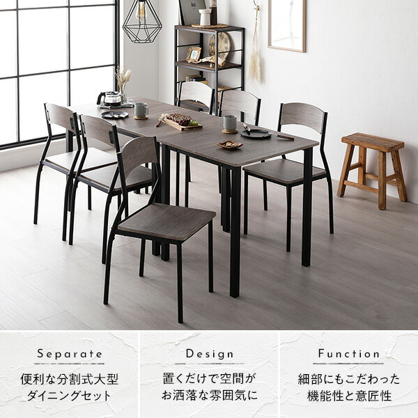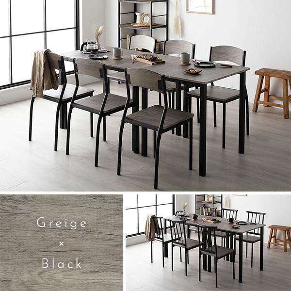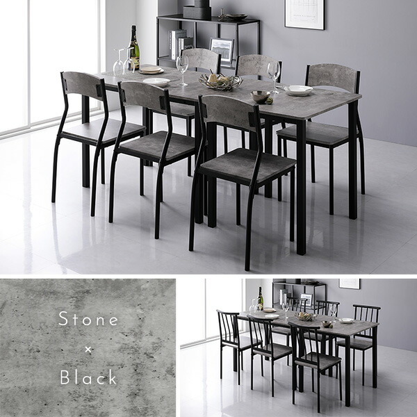 ダイニングセット 8点セット ダイニングテーブル 幅180cm 分割 ストーン×ブラック ダイニングチェア シンプルタイプ 6脚付き 6人掛けセット リビング家具 インテリア家具 食卓机 食卓テーブル リビングテーブル 食卓チェア 食卓椅子 家具セット