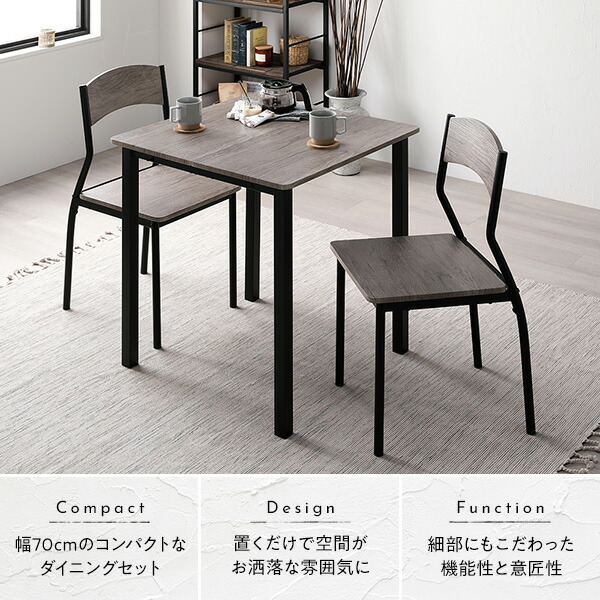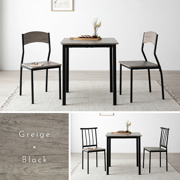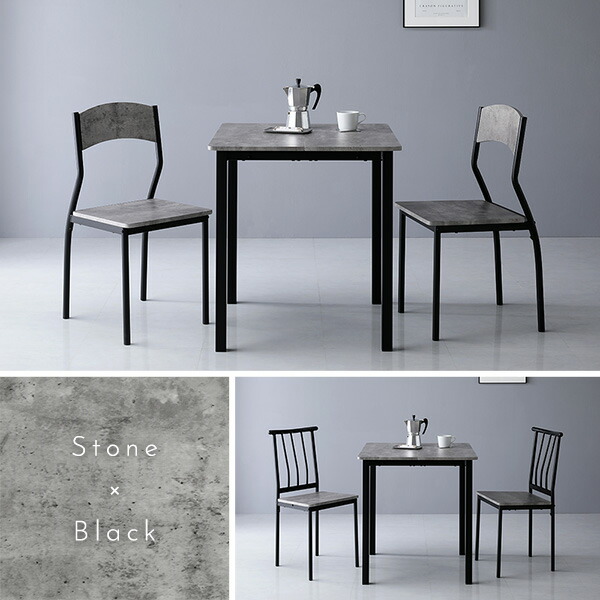 ダイニングセット 3点セット ダイニングテーブル 幅70cm ストーン×ブラック ダイニングチェア シンプルタイプ 2脚付き 2人掛けセット リビング家具 インテリア家具 食卓机 食卓テーブル リビングテーブル 食卓チェア 食卓椅子 家具セット