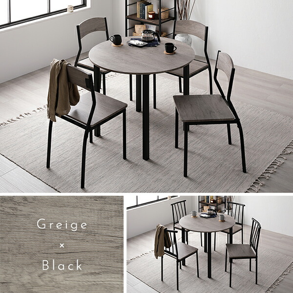 ダイニングセット 5点セット ダイニングテーブル 幅90cm 円形 丸形 グレージュ×ブラック ダイニングチェア シンプルタイプ 4脚付き 4人掛けセット リビング家具 インテリア家具 食卓机 食卓テーブル リビングテーブル 食卓チェア 食卓椅子 家具セット