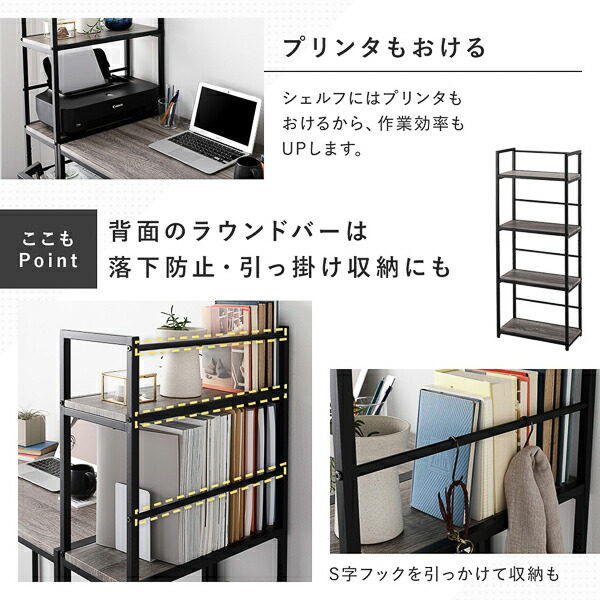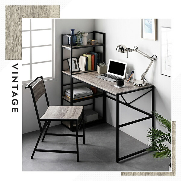 木目とスチールの異素材MIXデザイン 。軽やかな細身フレームの モダン シンプル PCデスク PCチェア 収納家具 セット