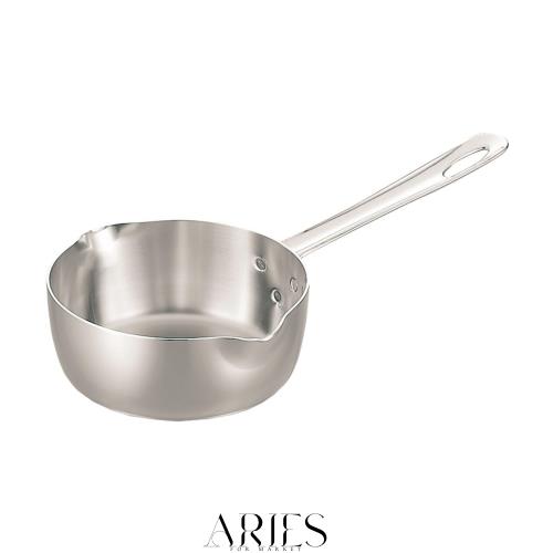 素材・材質:本体/アルミクラッド三層鋼・外側 ステンレス(SUS430=クローム18%、ニッケル0%)・内部 アルミニウム・内側面 ステンレス (SUS304=クローム18%、ニッケル8%)、持ち手/18-8ステンレス