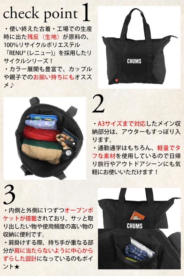【最大900円OFF】モールクーポン対象! チャムス バッグ トート トートバッグ CHUMS リサイクルチャムスデイリートート 25L A3サイズ対応 CH60-3845 メンズ レディース キッズ ポイント10倍 送料無料 人気 【正規代理店】